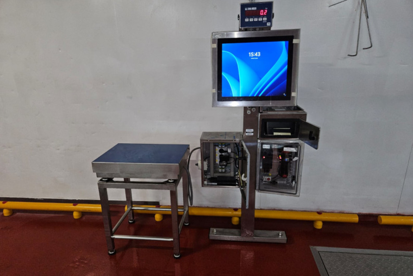 Robustné nerezové pracovisko navrhnuté pre prevádzky v mäsiarstve a potravinárskej výrobe — odolné voči umývaniu, s dotykovým displejom, integrovaným indikátorom váženia, čítačkou RFID a čiarových kódov a sieťovým pripojením pre bezproblémovú integráciu s vaším výrobno-evidenčným systémom.